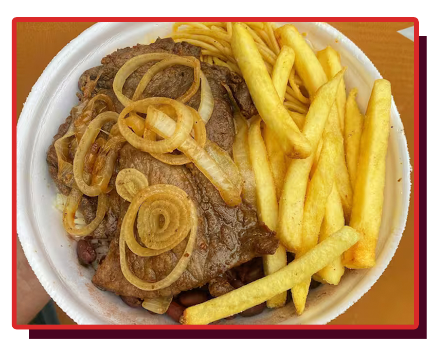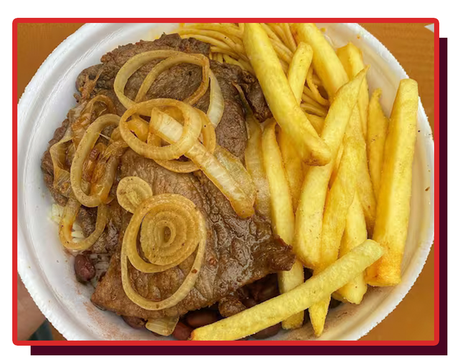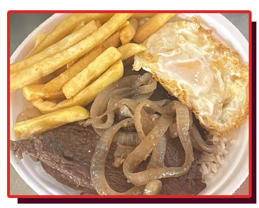 Marmitex Bife Acebolado + Fritas + Coca-Cola